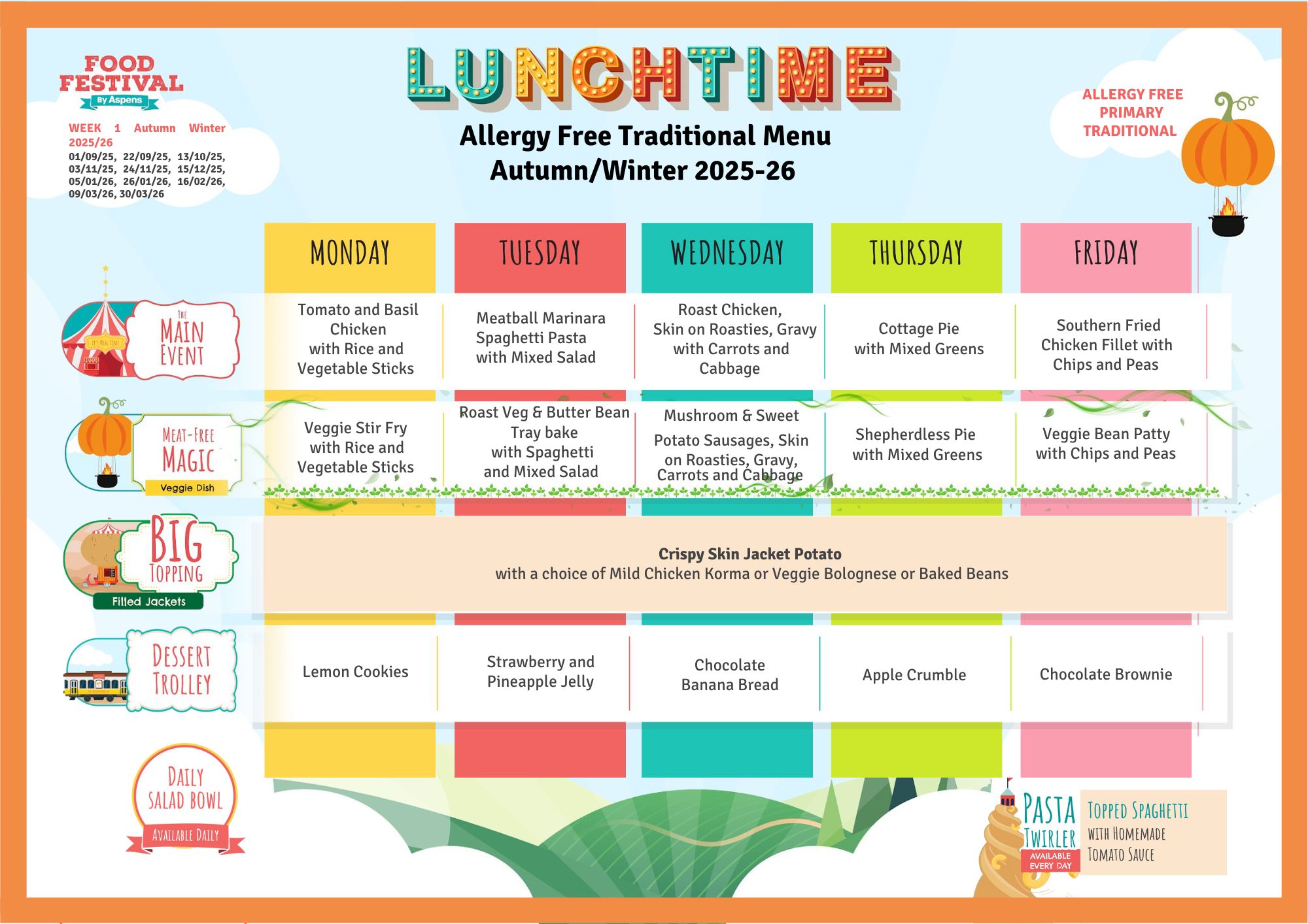 Our meals are provided and cooked by Aspens at The King Alfred School Academy and delivered to school daily.