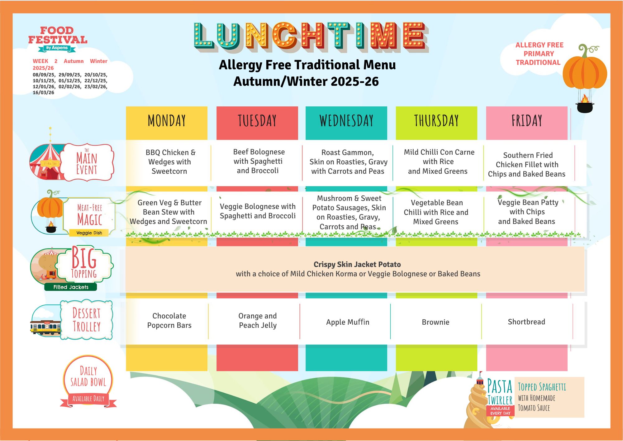 Meals are ordered via Aspens Select, which is an online payment system that allows you to order in advance and any time up to 9am on the day for a meal. Registration codes are provided by the office, and you can then register with Aspens here